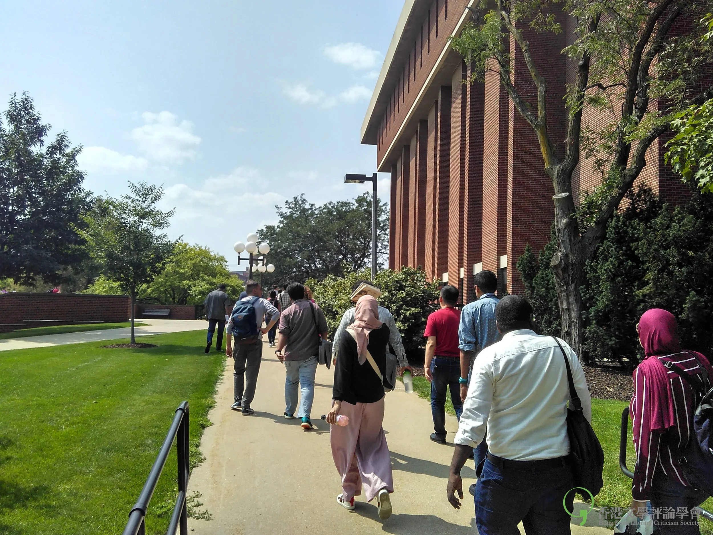 作家們在愛荷華大學圖書館外
